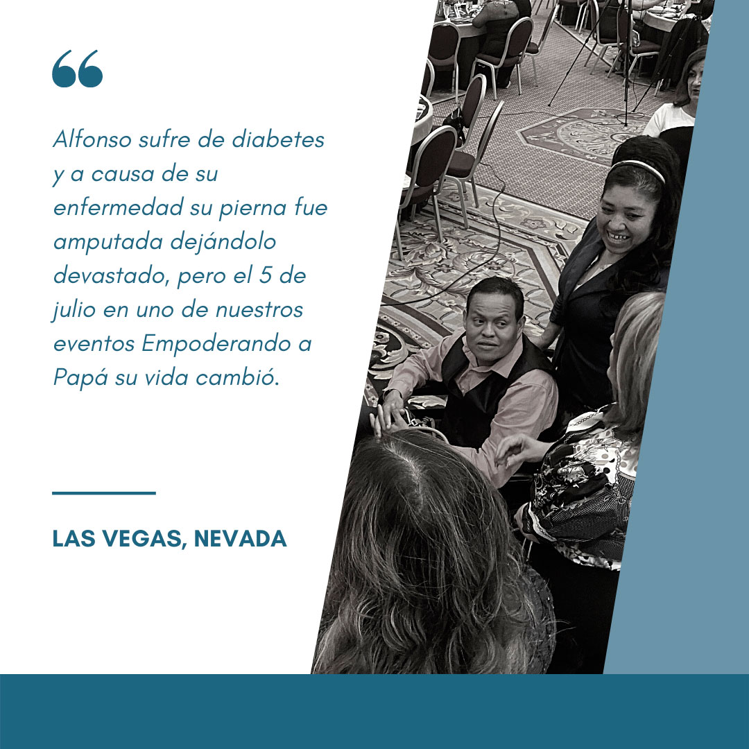 Alfonso sufre de diabetes y a causa de su enfermedad su pierna fue amputada dejándolo devastado, pero el 5 de julio en uno de nuestros eventos Empoderando a Papá su vida cambió.