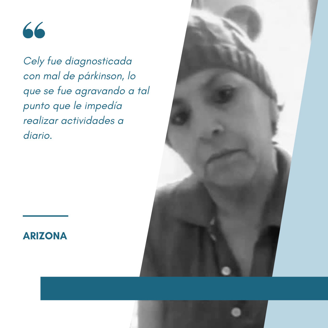 Cely fue diagnosticada con mal de párkinson, lo que se fue agravando a tal punto que le impedía realizar actividades a diario.