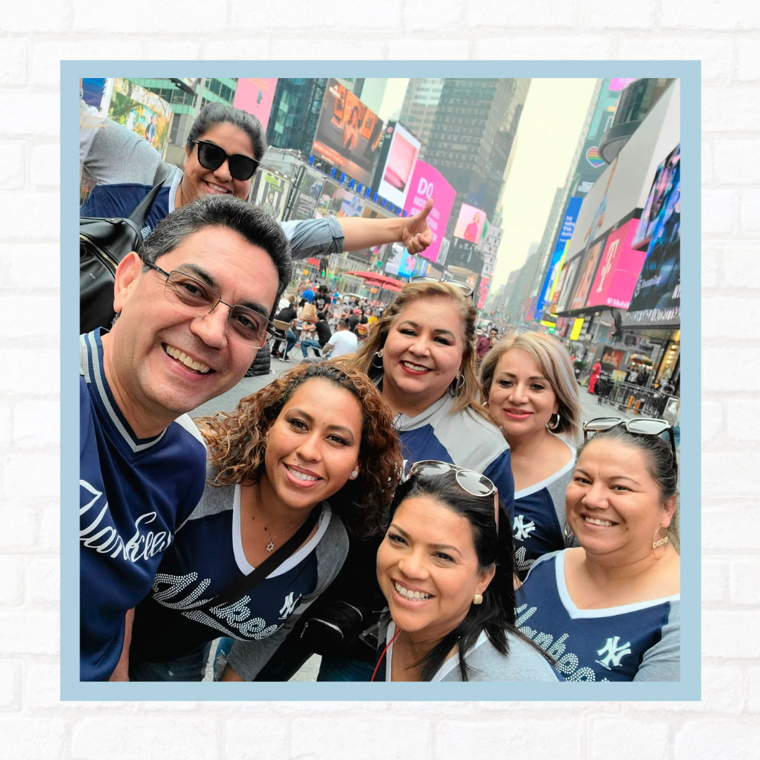 En la gran pantalla del Yankee Stadium poso nuestro equipo Eternal, gritando con alegría las grandes cosas que han logrado con nosotros.